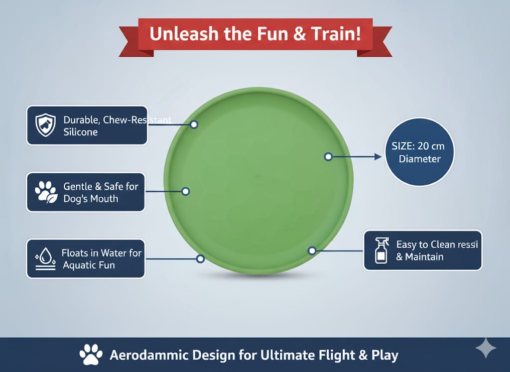 قرص طائر مصنوع من السيليكون المخصص للكلاب أداة ممتعة لتدريب الكلاب و تحفيز النشاط البدني و اللعب في الهواء الطلق مرن و آمن يتميز بالمتانة و سهولة الاستخدام